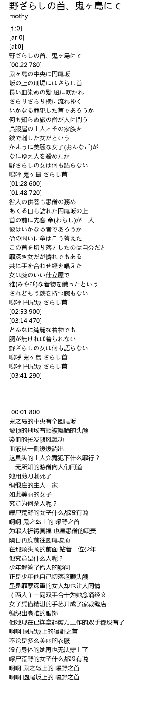 | [01:22.620] | 嗚呼 鬼ヶ島 さらし首 |