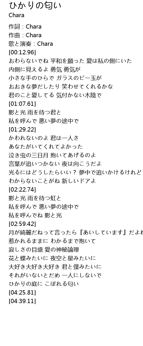 | [00:02.76] | 作詞:Chara |