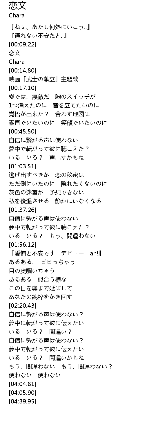 | [00:10.26] | 恋文 |