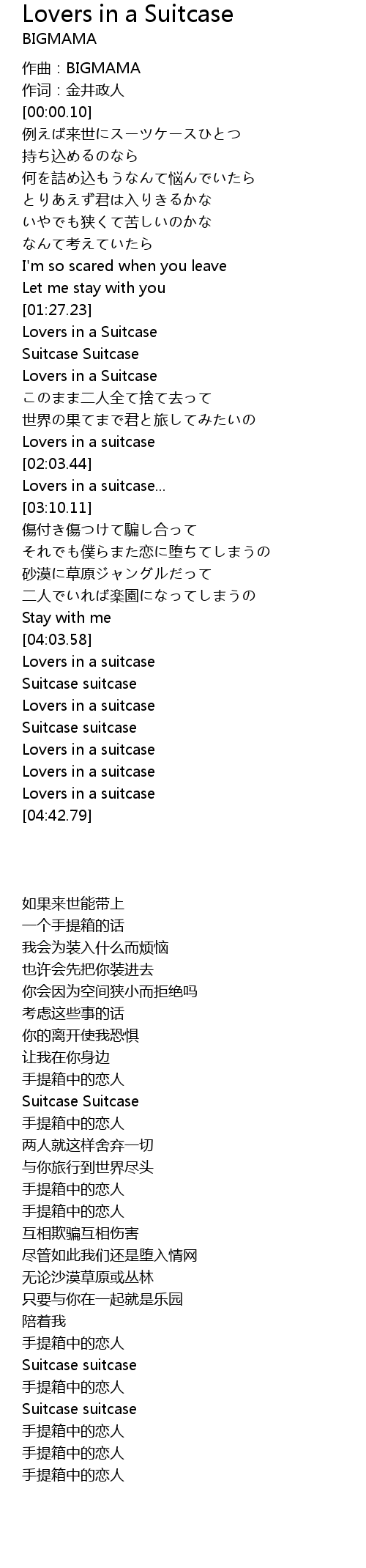 | [04:33.37] | Lovers in a suitcase |
