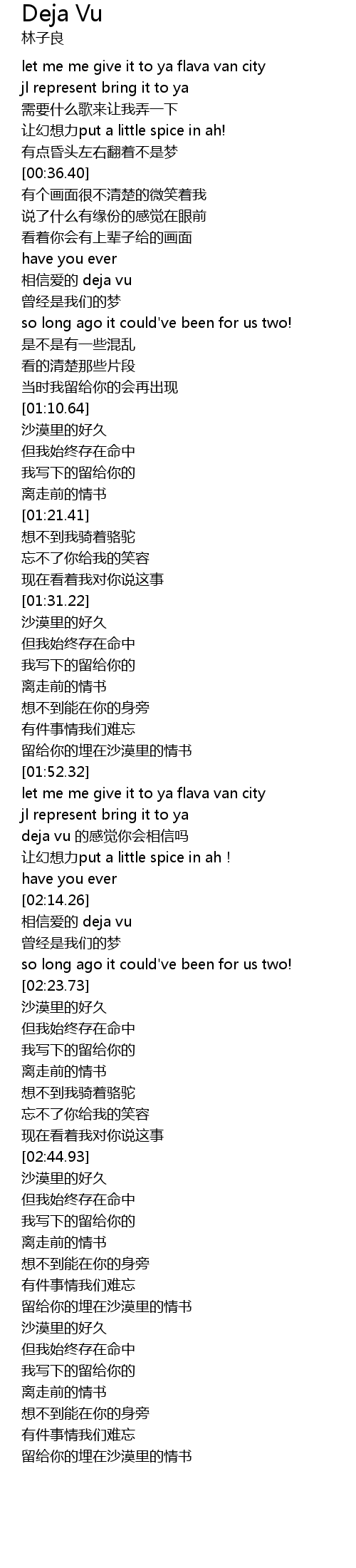 | [02:02.58] | let me me give it to ya flava van city |