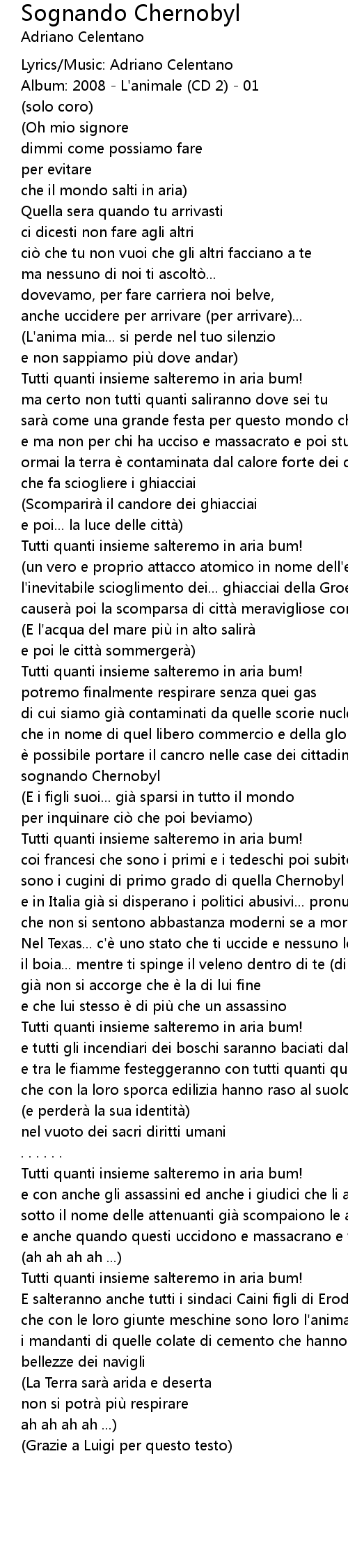 | Song | Sognando Chernobyl |