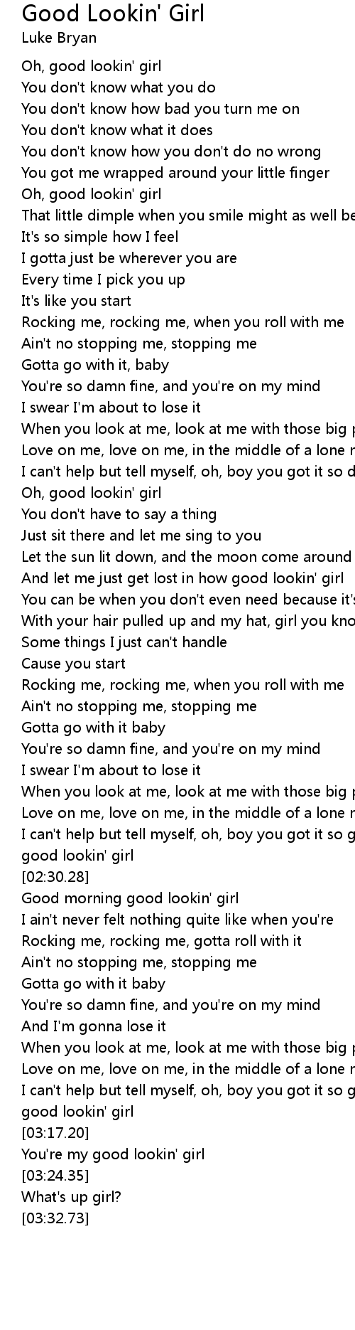 [02:22.65] I can't help but tell myself, oh, boy you got it so good with this good lookin' girl