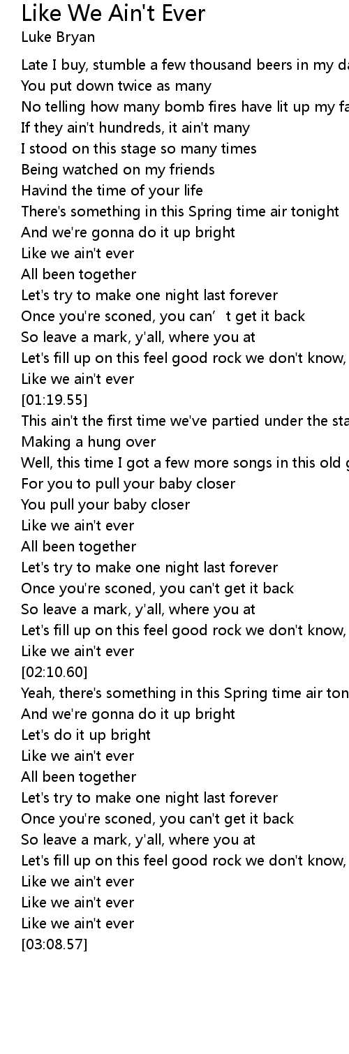 | [01:27.30] | This ain't the first time we've partied under the stars |