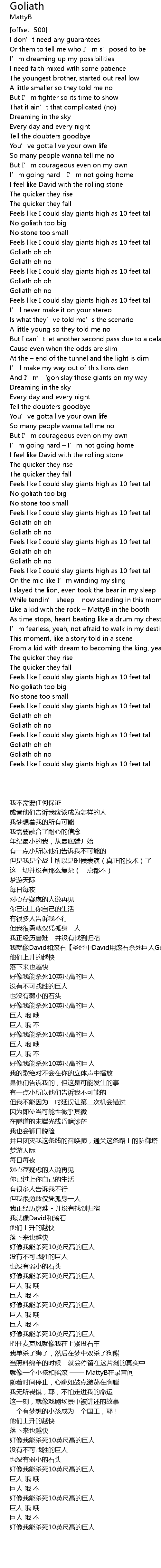 | [01:18.80] | Goliath oh oh |