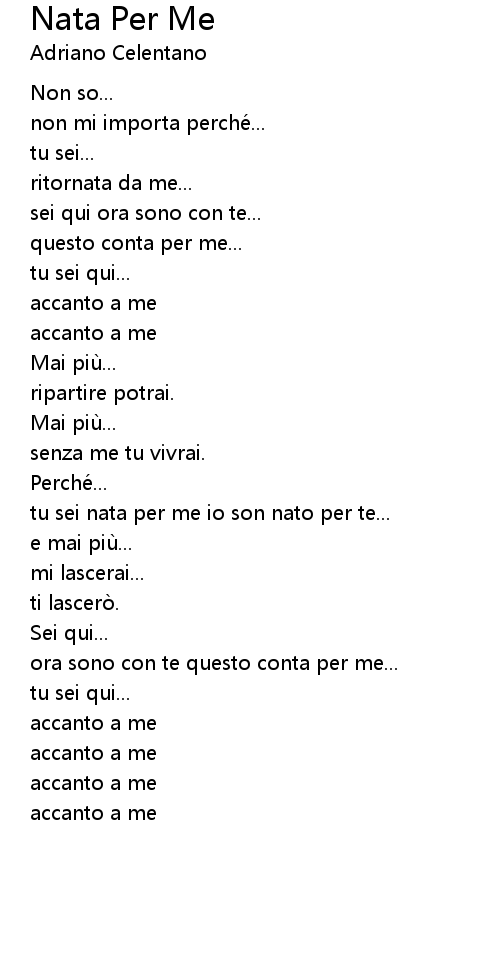 | Song | Nata Per Me |