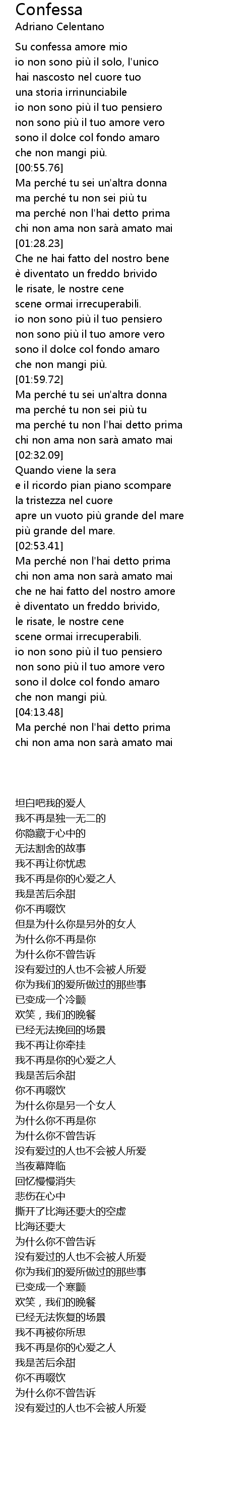 | [00:57.74] | Ma perche tu sei un' altra donna |