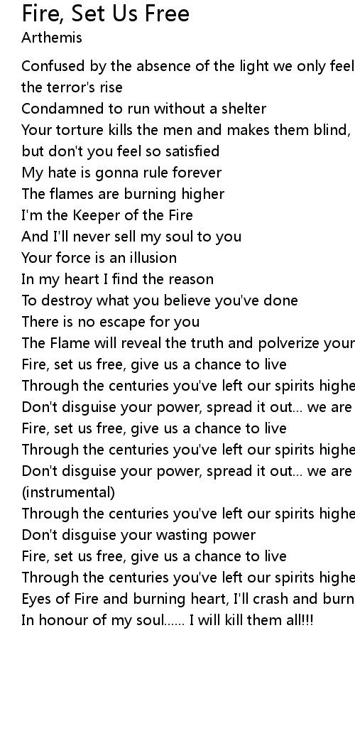 Fire, set us free, give us a chance to live |