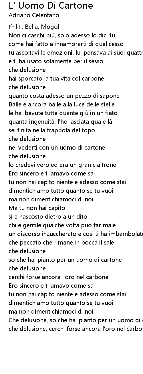| Che delusione, so che hai pianto per un uomo di cartone | |