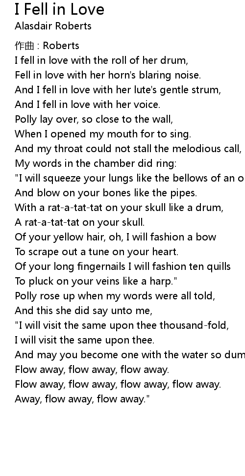 | I fell in love with the roll of her drum, | |
