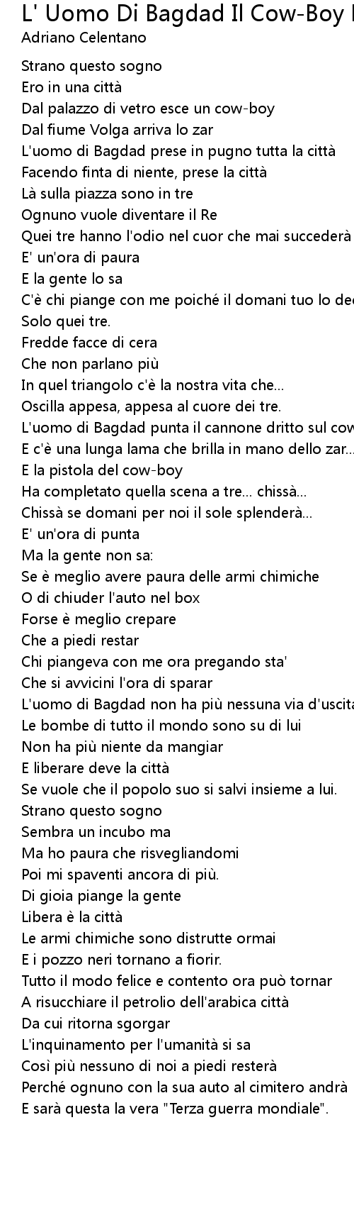 | Song | L' Uomo Di Bagdad Il Cow-Boy E Lo Zar |