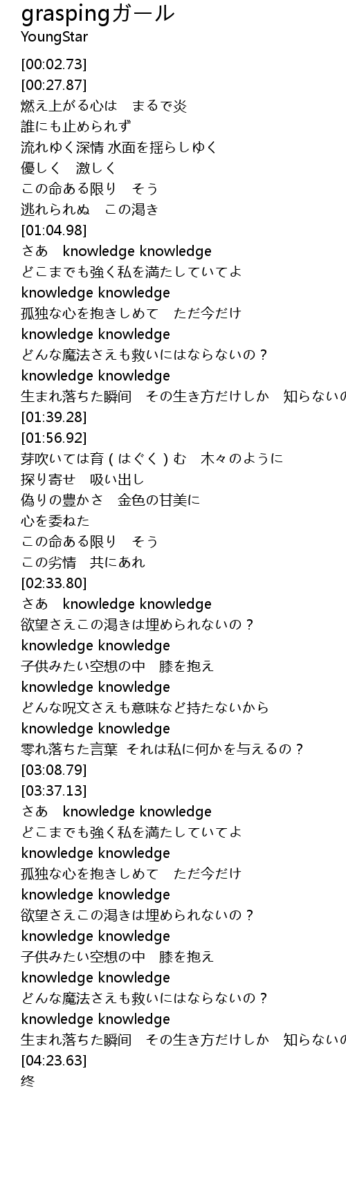 | [04:12.22] | knowledge knowledge |