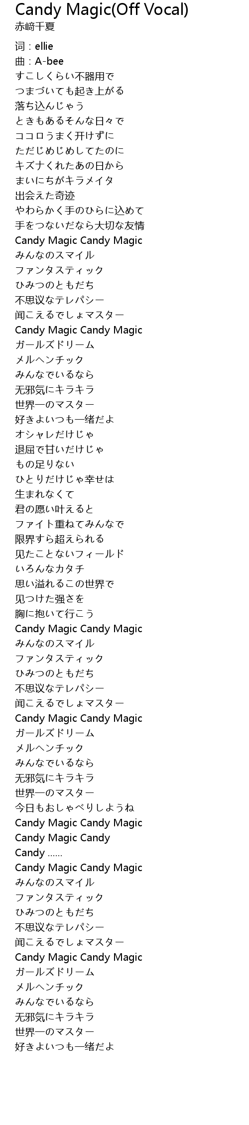 | [01:34.97] | Candy Magic Candy Magic |