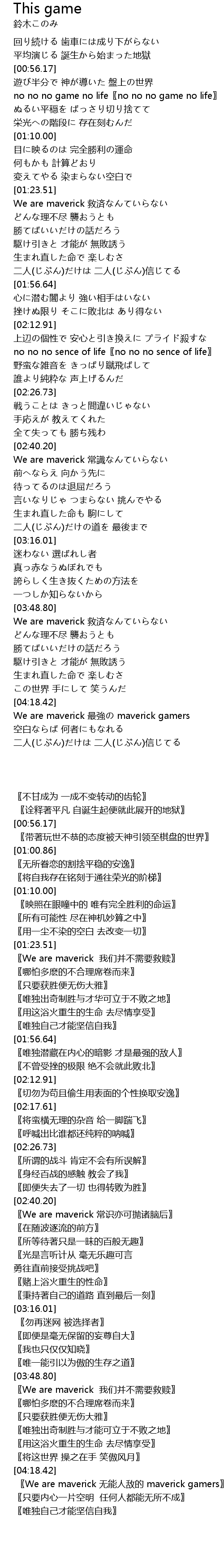 | [01:00.86] | no no no game no life〖no no no game no life〗 |