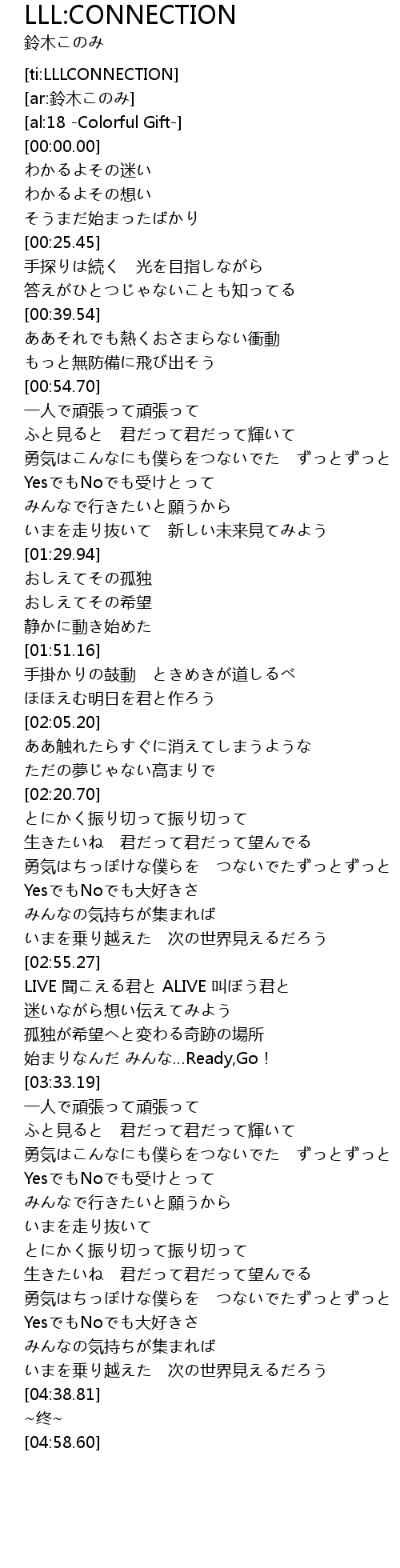 | [03:44.33] | 勇気はこんなにも僕らをつないでた ずっとずっと |