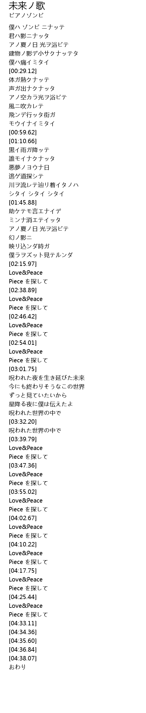 | [00:00.32] | 僕ハ ゾンビ ニナッテ |
