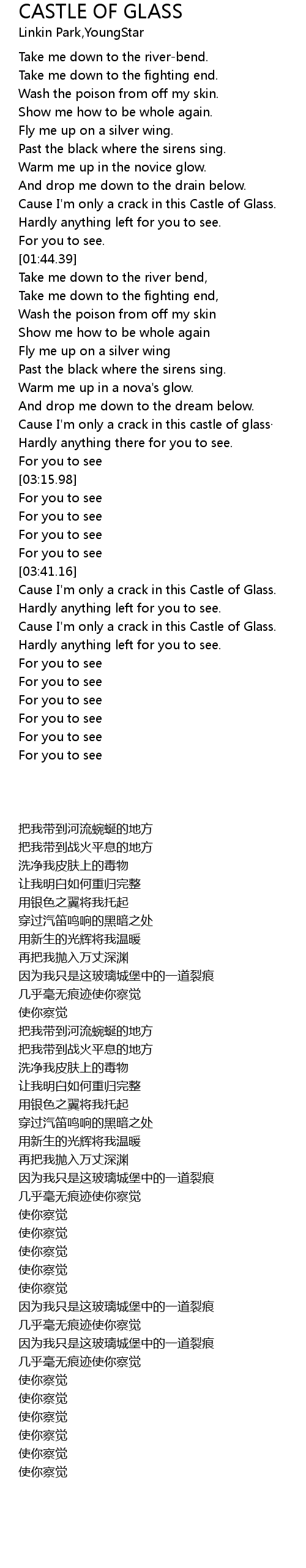 | [04:24.95] | Cause I' m only a crack in this Castle of Glass. |