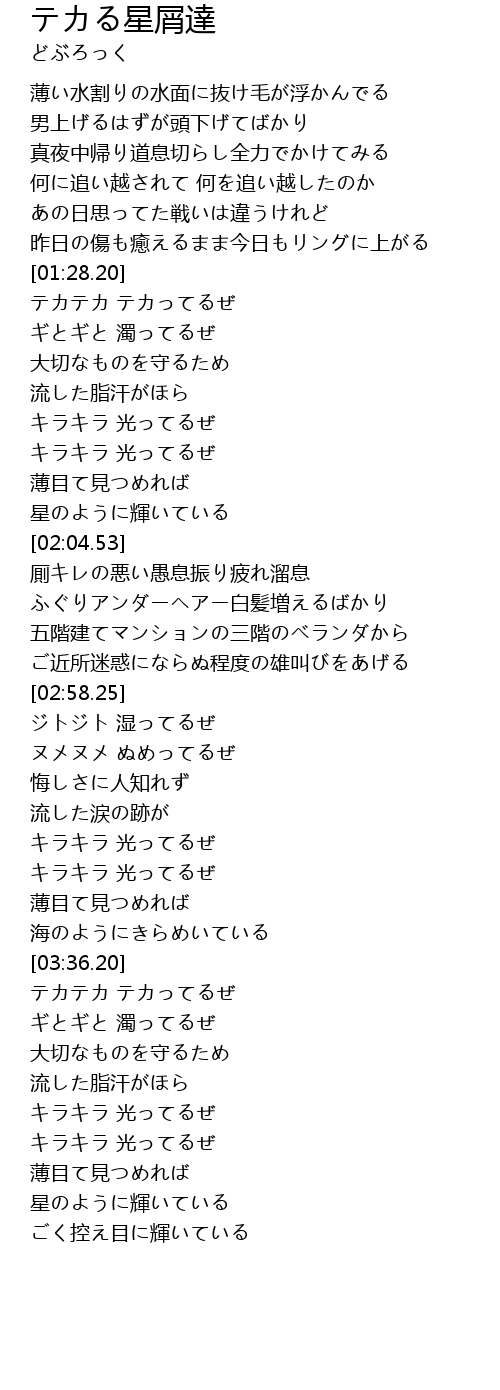 | [01:17.63] | 昨日の傷も癒えるまま今日もリングに上がる |