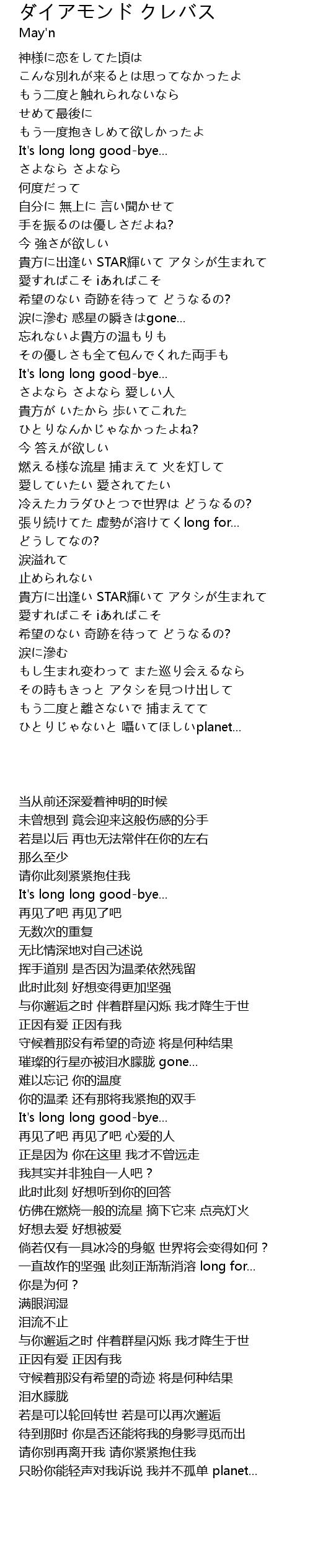 | [02:16.52] | 涙に滲む 惑星の瞬きはgone... |