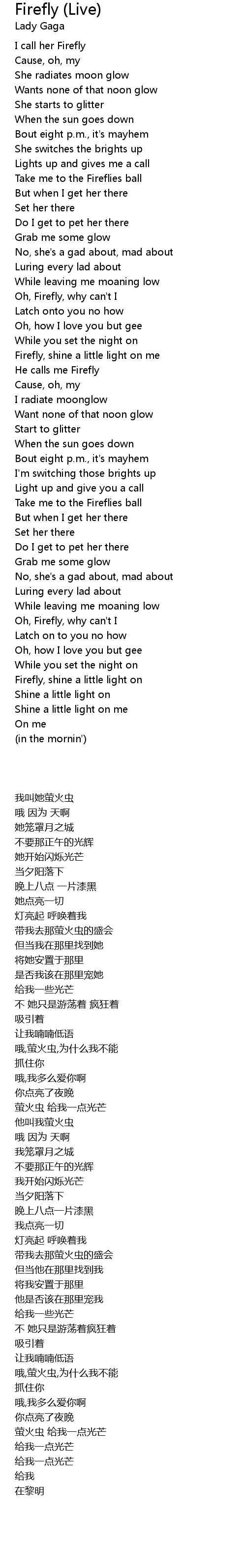 Firefly, shine a little light on me |