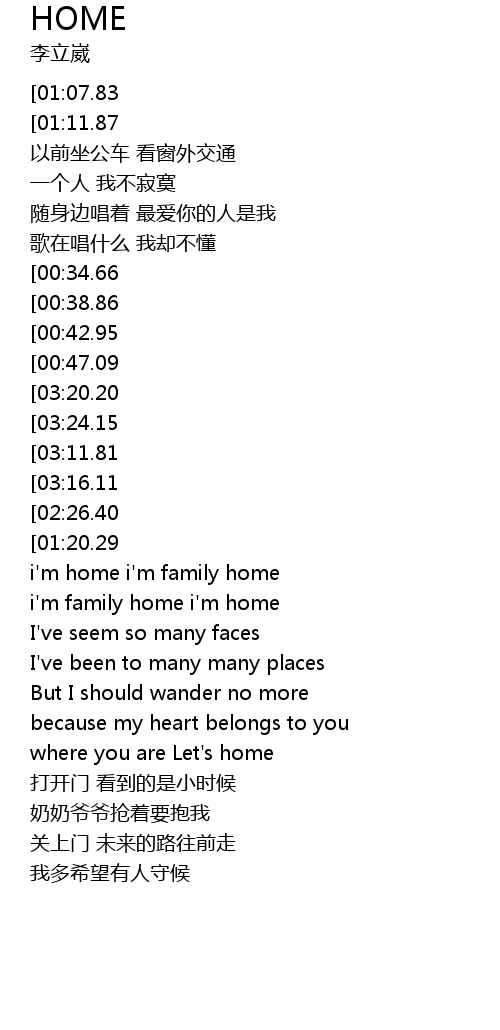 | [02:30.44][01:20.29] | i' m home i' m home |