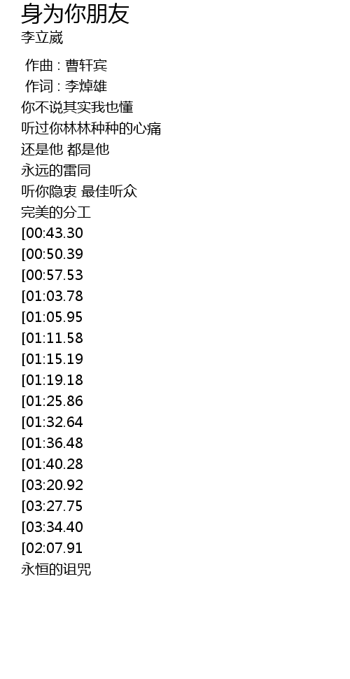 | [02:44.78][01:11.58] | 身为你朋友 |