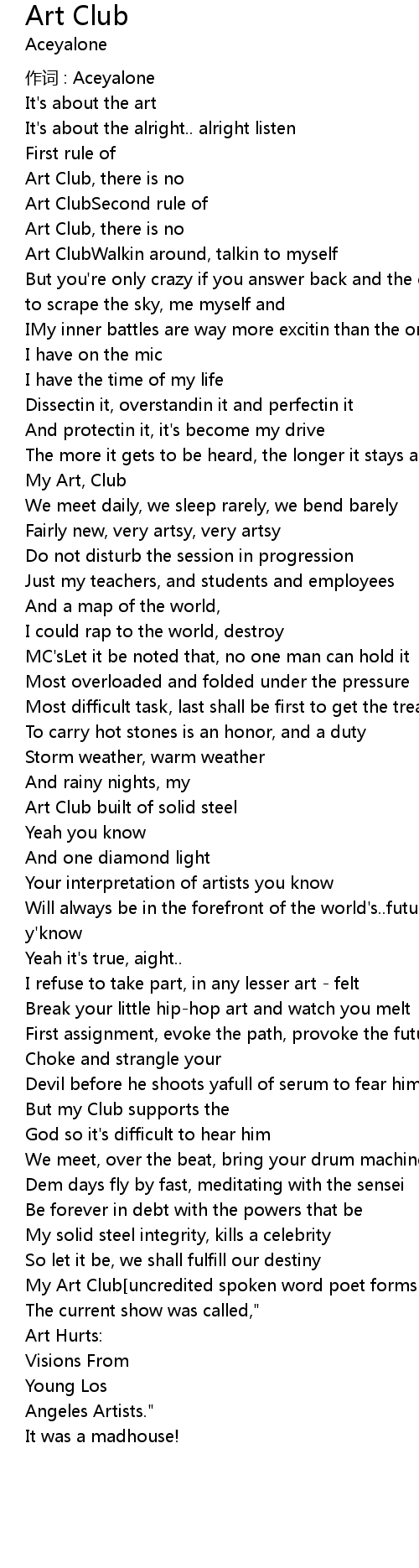 | My Art Club uncredited spoken word poet forms the song' s outro | |