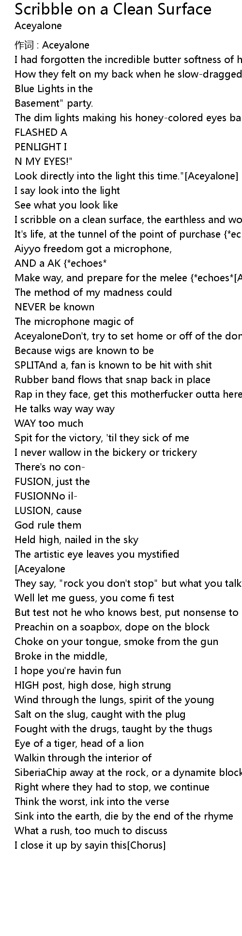 | I scribble on a clean surface, the earthless and worthless echoes Chorus | |