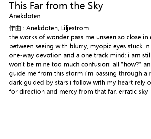 | the works of wonder pass me unseen so close in distance, yet so much lies between seeing with blurry, myopic eyes stuck in a limbo so far from the sky oneway devotion and a one track mind: i am still yearning, though it clearly won' t be mine too much confusion: all " how?" and " why?" i need you near me to guide me from this storm i' m passing through a moonlit path runs deep in the dark guided by stars i follow with my heart rely on comfort, rely on time hope for direction and mercy from that far, erratic sky |