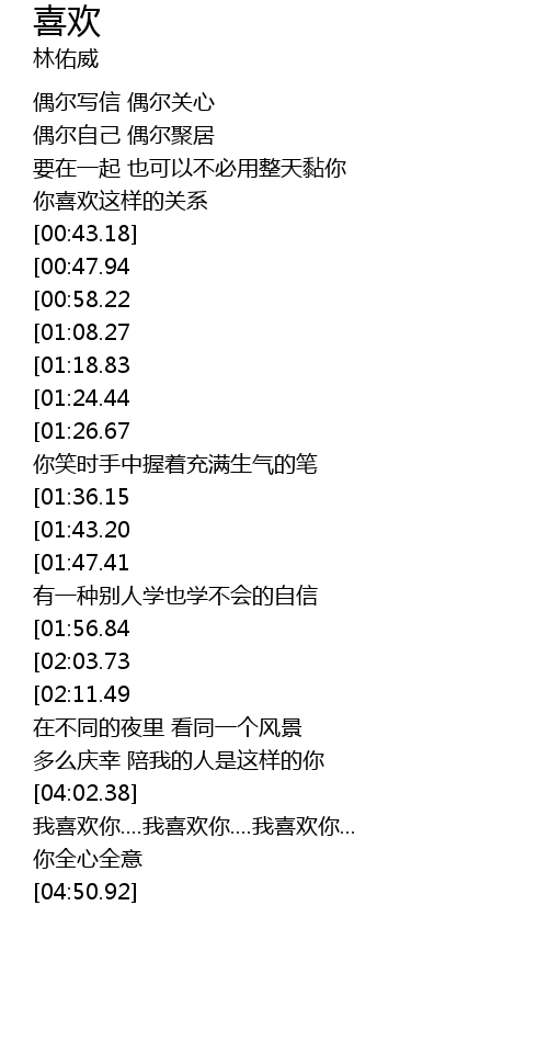 | [04:08.60] | 我喜欢你....我喜欢你....我喜欢你... |