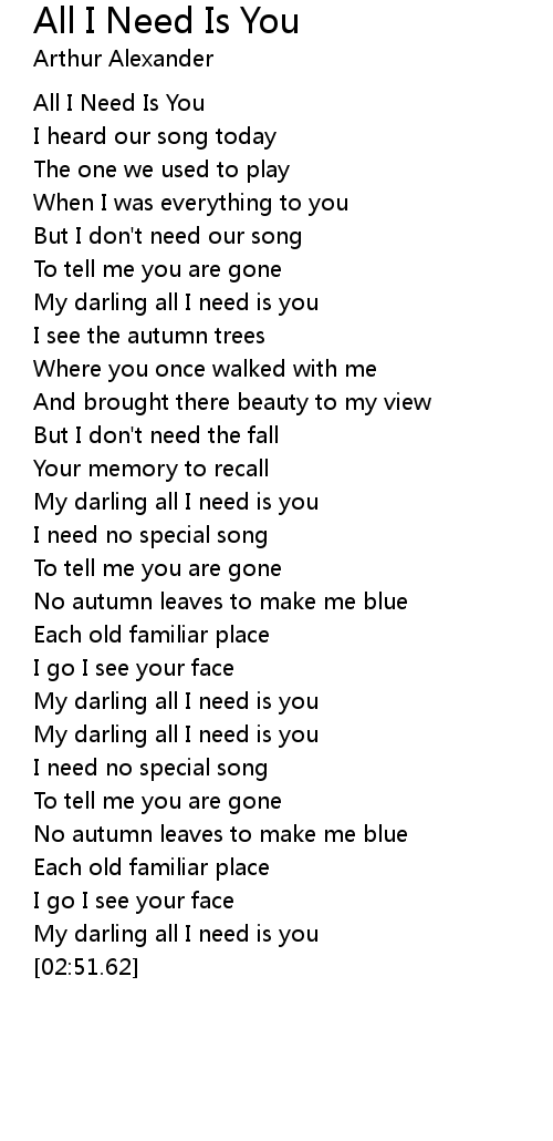 My darling all I need is you |