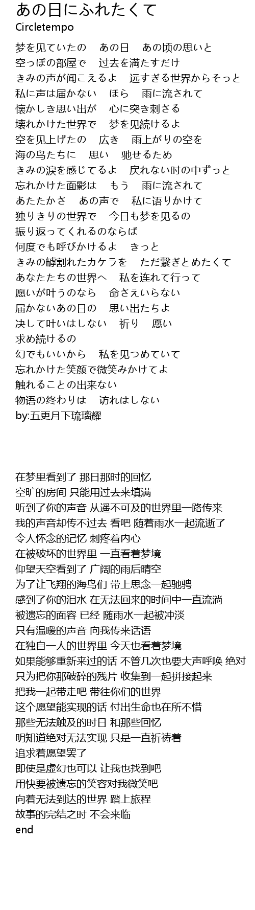 | [00:13.970] | 梦を见ていたの あの日 あの顷の思いと |