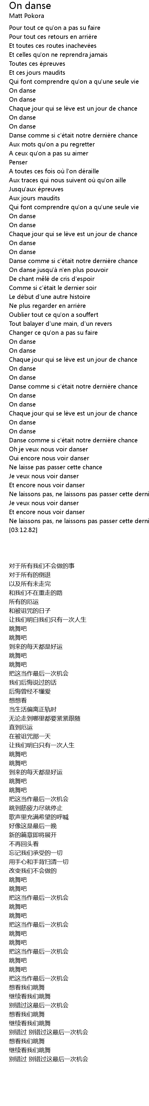 | [02:13.70] | Danse comme si c'était notre dernière chance |