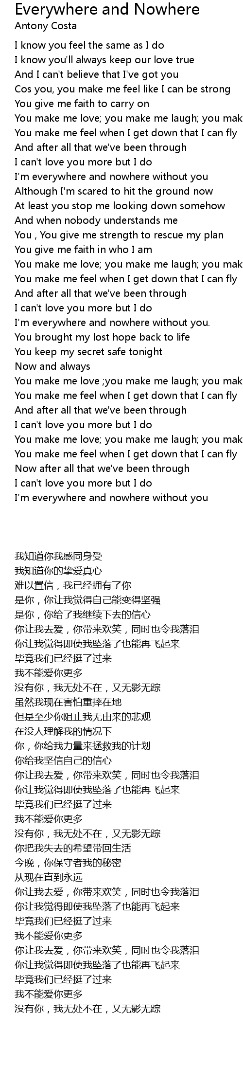 Everywhere and Nowhere Lyrics
