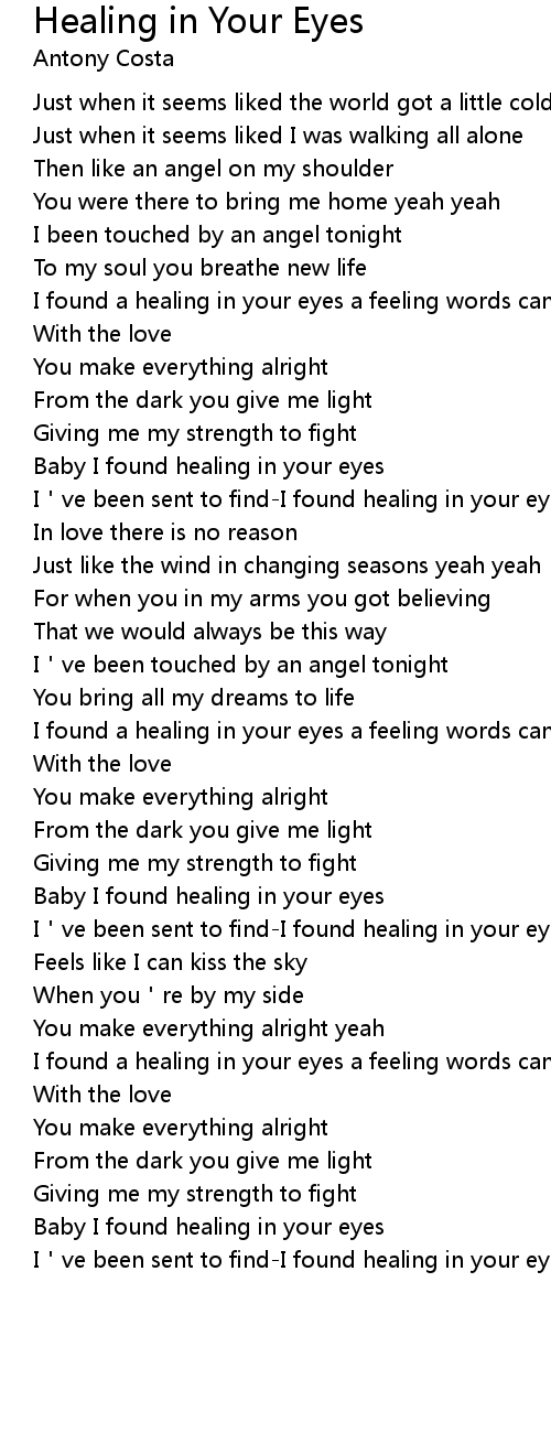 | [01:20.37] | I ve been sent to findI found healing in your eyes |