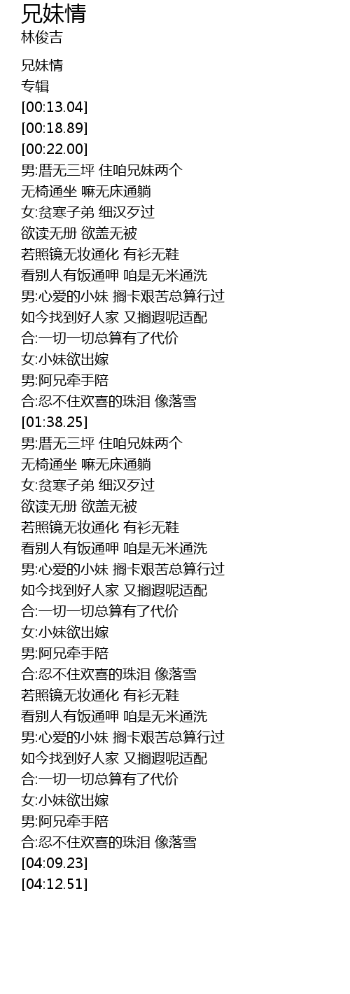 | [00:24.05] | 男:厝无三坪 住咱兄妹两个 |