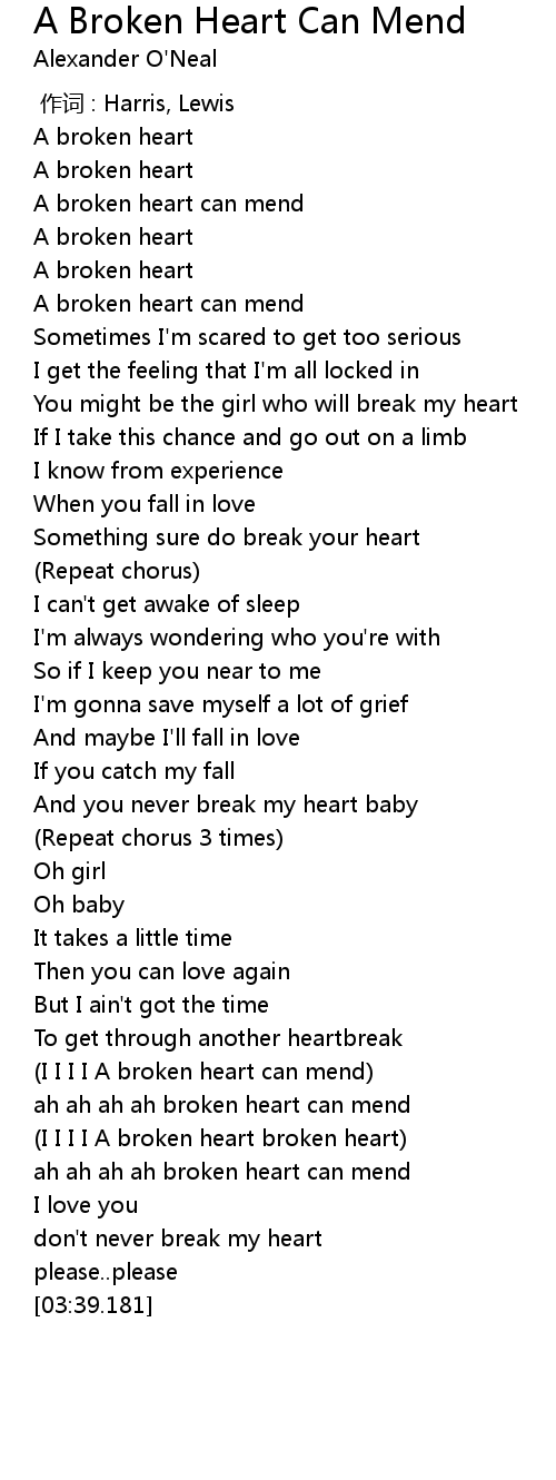 | [03:09.878] | ah ah ah ah broken heart can mend |