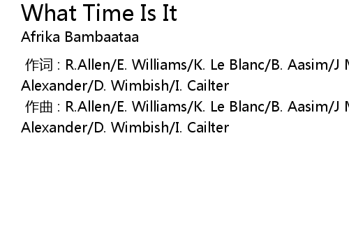 | [00:00.000] | 作曲 : R.Allen/E. Williams/K. Le Blanc/B. Aasim/J Miller/B Alexander/D. Wimbish/I. Cailter |