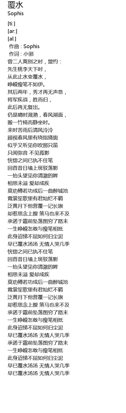| [03:10.71] | 早已覆水汤汤 无情人哭几季 |