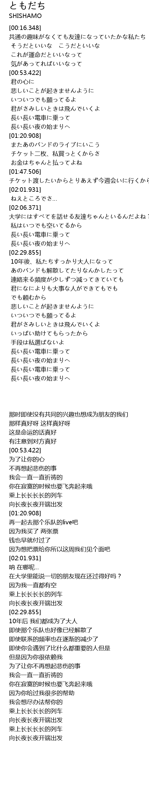 | Song | ともだち |