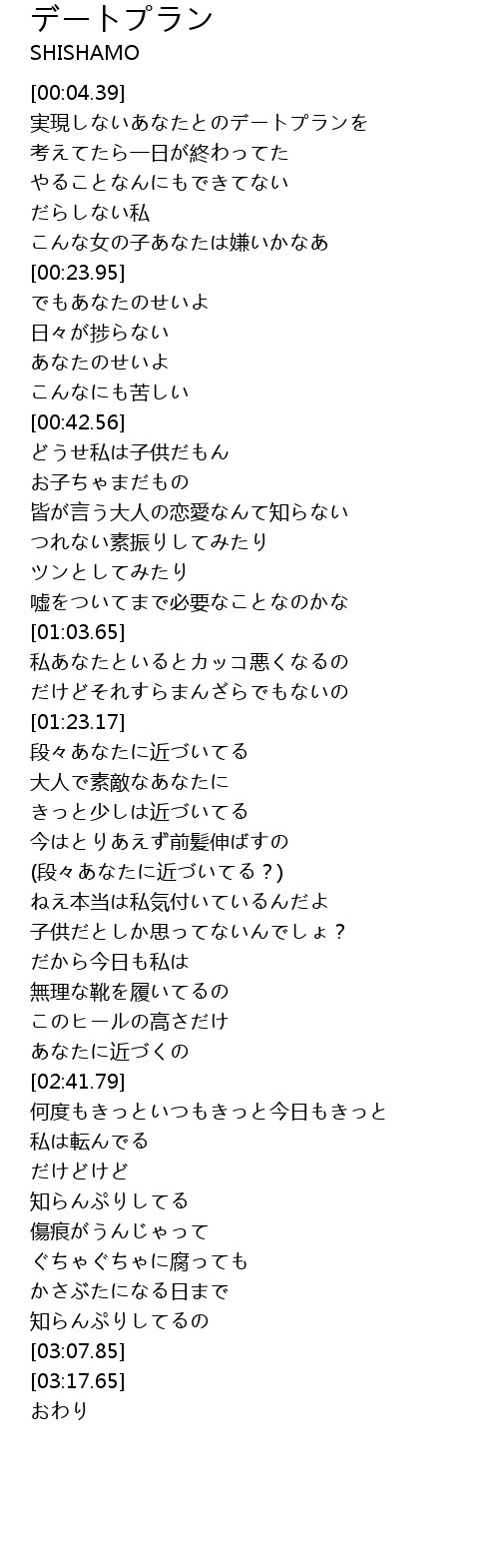 | [00:05.01] | 実現しないあなたとのデートプランを |