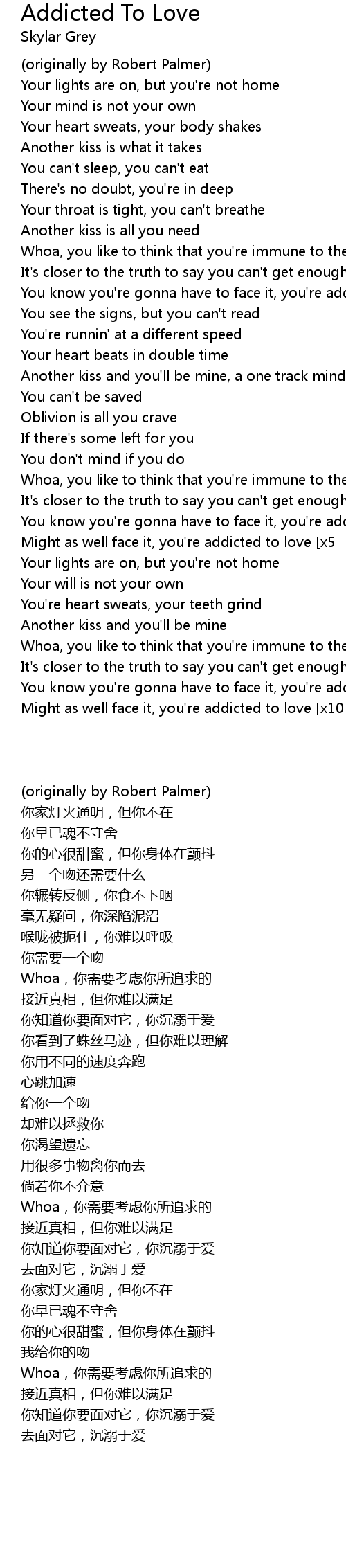 Addicted To Love Lyrics