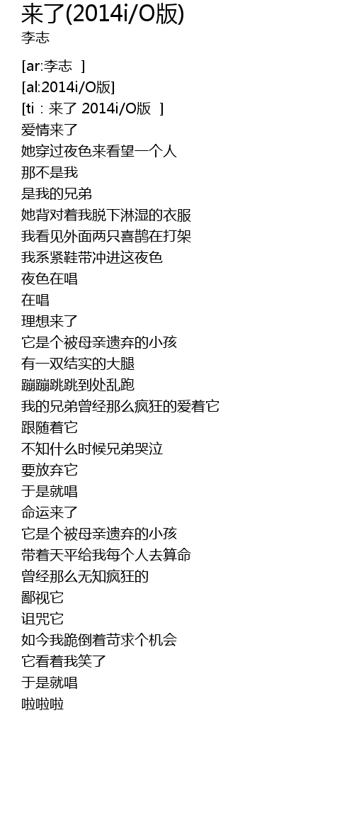 | [01:42] | 不知什么时候兄弟哭泣 |