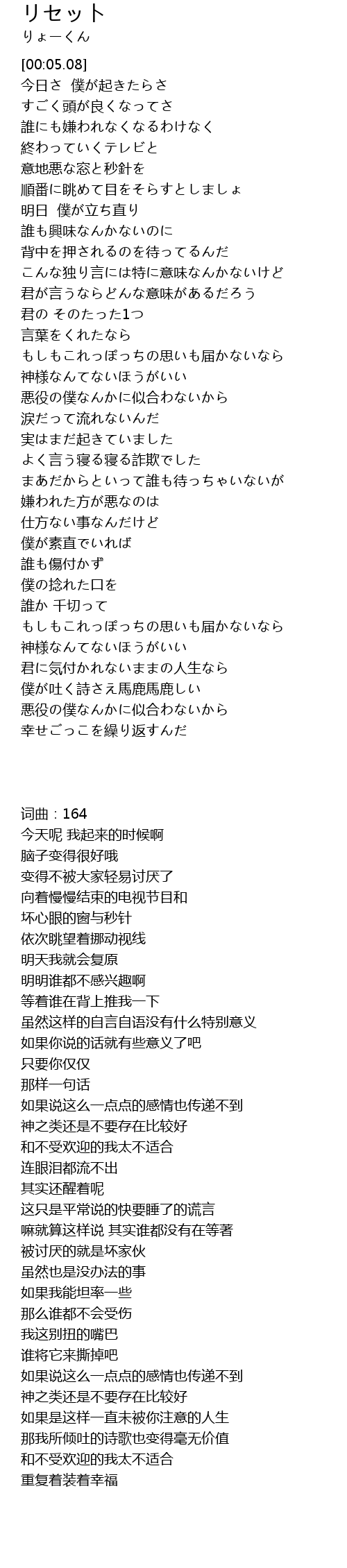 | Song | リセット |