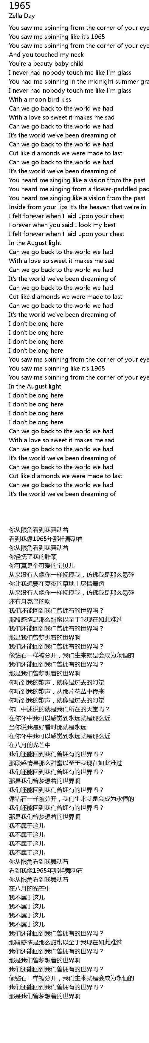| [00:04.530] | You saw me spinning like it's 1965 |