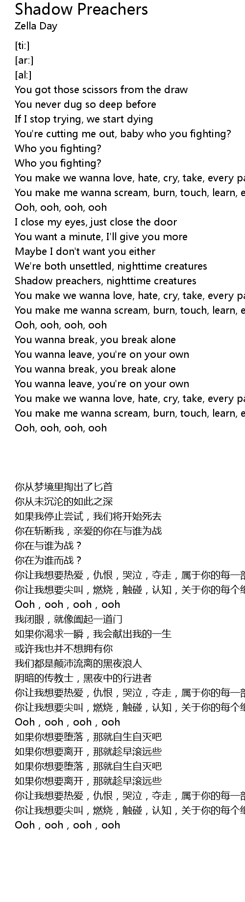 | [01:01.39] | Shadow preachers, nighttime creatures |