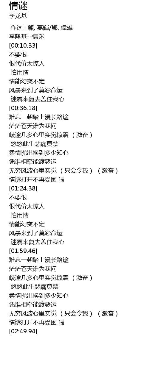 | [00:02.12] | lǐ lōng jī qíng mí |