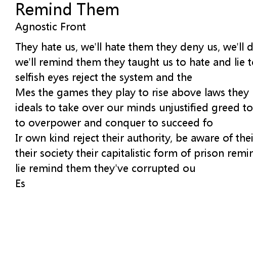 They hate us, we'll hate them they deny us, we'll defy them they ignore us, we'll remind them they taught us to hate and lie to obey them and look in their selfish eyes reject the system and the |