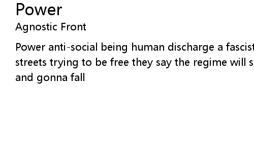 | Power anti-social being human discharge a fascist regime we're fighting in the streets trying to be free they say the regime will save us all it's anti-social and gonna fall |