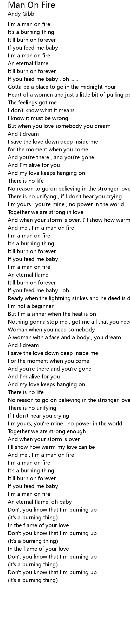 And me , I'm a man on fire |